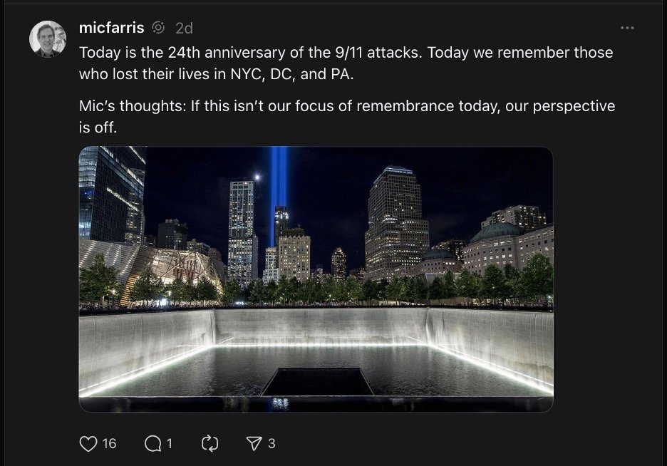 [2] Mic Farris [@micfarris], Threads, September 11, 2025, https://www.threads.com/@micfarris/post/DOdiuYjkXpM